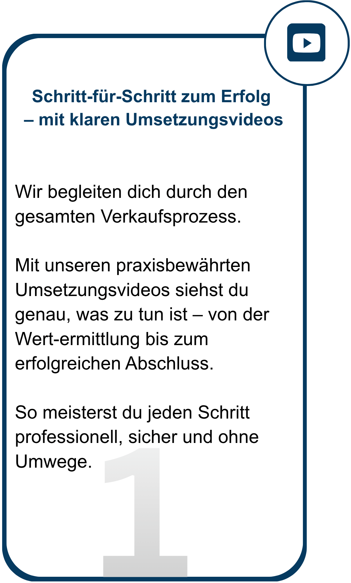 Mit unseren Umsetzungsvideos, Vorlagen und Checklisten gelingt der Verkauf auch ohne Fachwissen.