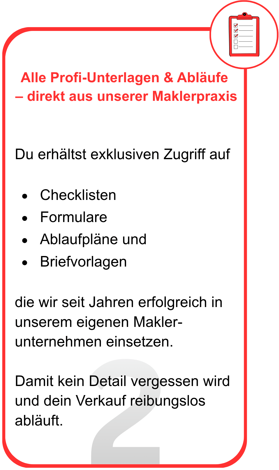 Unser Kurs zeigt dir praxisbewährte Abläufe, Vorlagen und Strategien, die seit über 30 Jahren im echten Immobilienverkauf funktionieren.