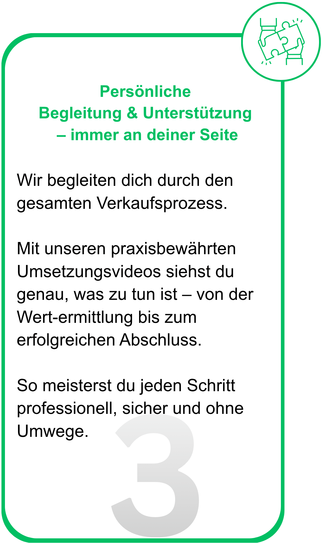 Wir begleiten dich persönlich – bis dein Verkauf erfolgreich abgeschlossen ist.